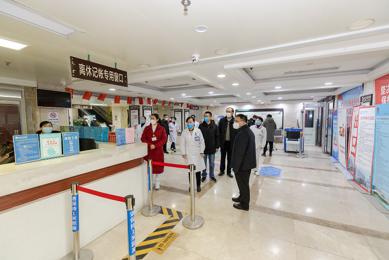 金虎辞旧岁,玉兔踏春来。1月22日,大年初一上午,市中医院党委书记范从海、院长殷海涛携班子成员和相关职能科室负责人,来到医院预检分诊台、门诊各诊室和病房,向春节期间仍然坚守在一线的医务人员拜年,给大家送上新春的祝福和诚挚的问候。同时代表医院祝愿广大患者新春快乐,早日康复。