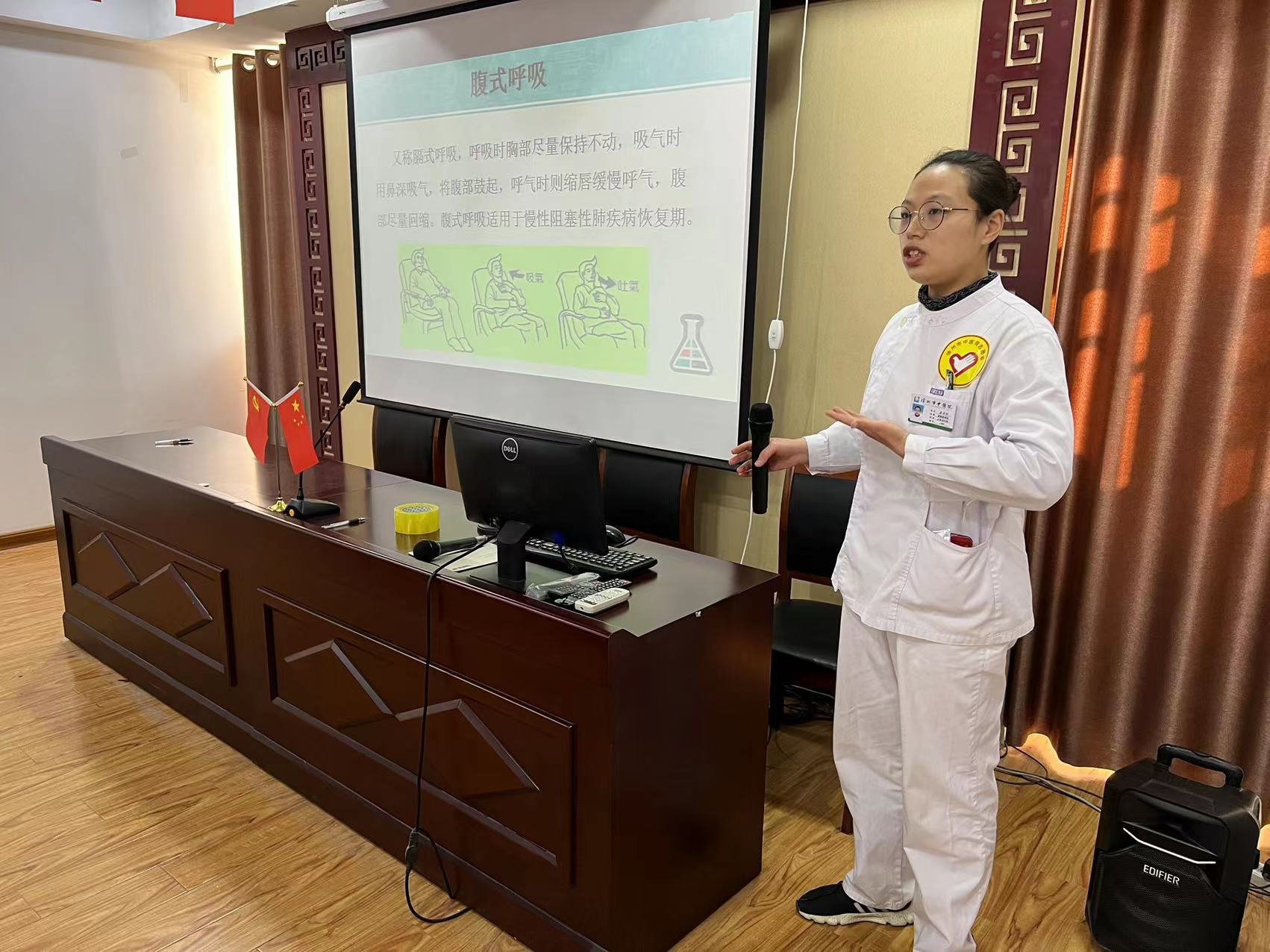 2月15日,徐州市中医院志愿服务队赴徐州市云龙区彭城街道莲花社区进行,此次讲座的主题是 “呼吸操锻炼”健康知识讲座,康复科李丹丹医生主要围绕老年新冠患者康复后胸闷气短等常见症状,通过图文并茂、互动教学的方法教授社区居民呼吸操(缩唇式呼吸、腹部呼吸)的训练方法,帮助其增强机体免疫力,改善肺功能。讲座过程中,医院志愿者们带领大家练习呼吸操,发放健康宣传资料,开展中医药医疗知识科普宣传。社区居民纷纷表示,此次健康讲座让他们深入了解了新冠康复后的肺部保健知识,学会了呼吸操的训练方法,感受到了浓浓的中医药特色服务。