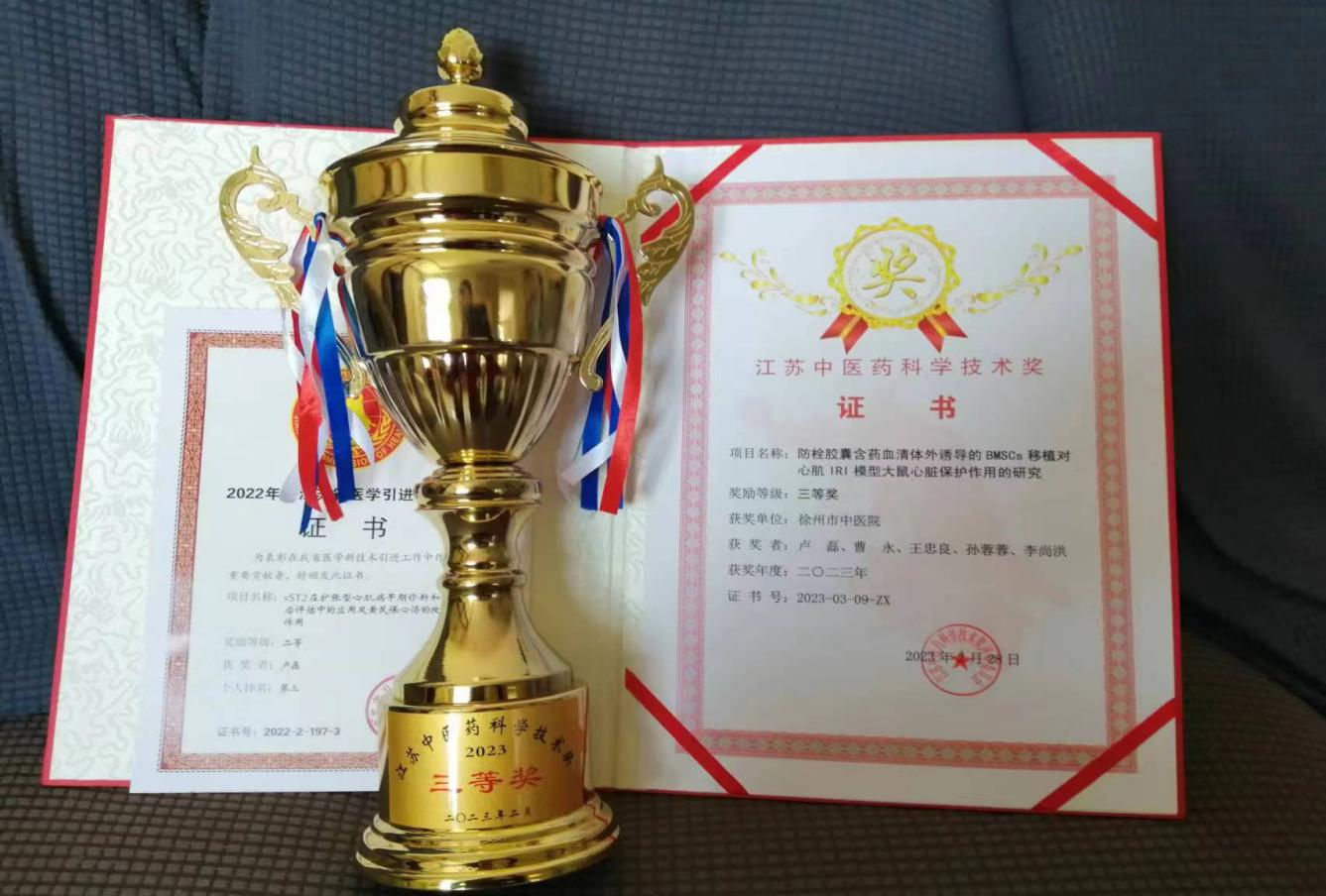 2月28日,2023年江苏中医药科学技术奖颁奖大会在南京召开,我院护理部黄秀主持的《恒温雷火灸治疗脾胃虚寒型慢性浅表性胃炎的应用研究》项目、心血管内科卢磊主持的《防栓胶囊含药血清体外诱导的BMSCs移植对心肌IRI模型大鼠心脏保护作用的研究》项目分获2022年度、2023年度江苏中医药科学技术奖三等奖。