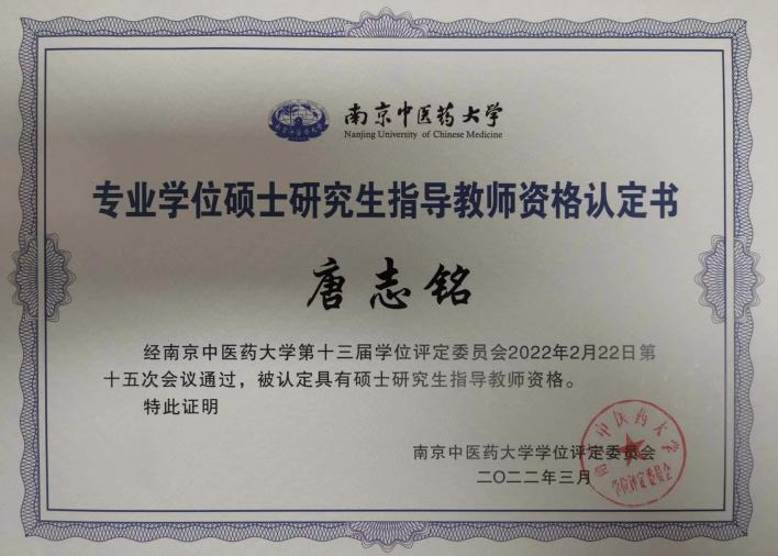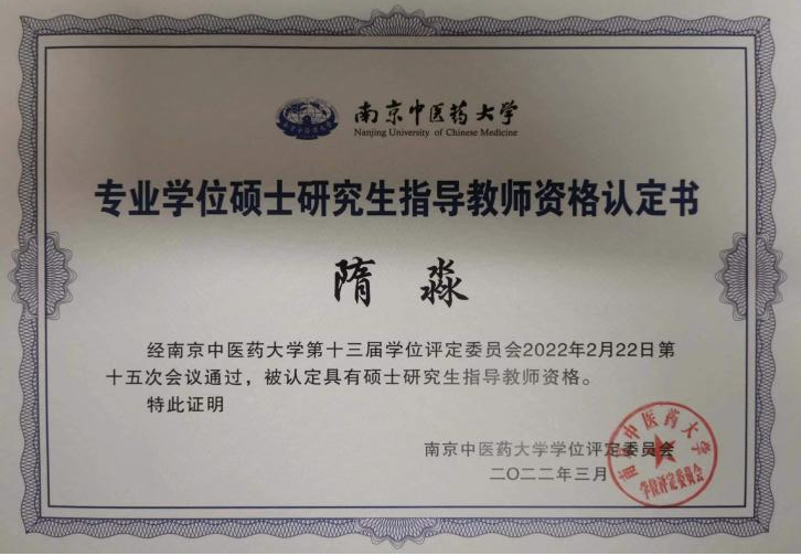 2022年,南京中医药大学学位委员会办公室根据《南京中医药大学研究生指导教师遴选条例》相关规定,组织了研究生导师的增列遴选工作。我院积极组织符合条件人员报名参加,经过个人申报、学科推荐、学位分委员会讨论、校学位委员会投票表决等严格的规定程序,我院肛肠科秦晓静、妇科蒋小飞、皮肤科唐志铭、内分泌科隋淼被增列为南京中医药大学硕士研究生导师。目前我院共有硕士研究生导师26人,在读硕士研究生65名。
