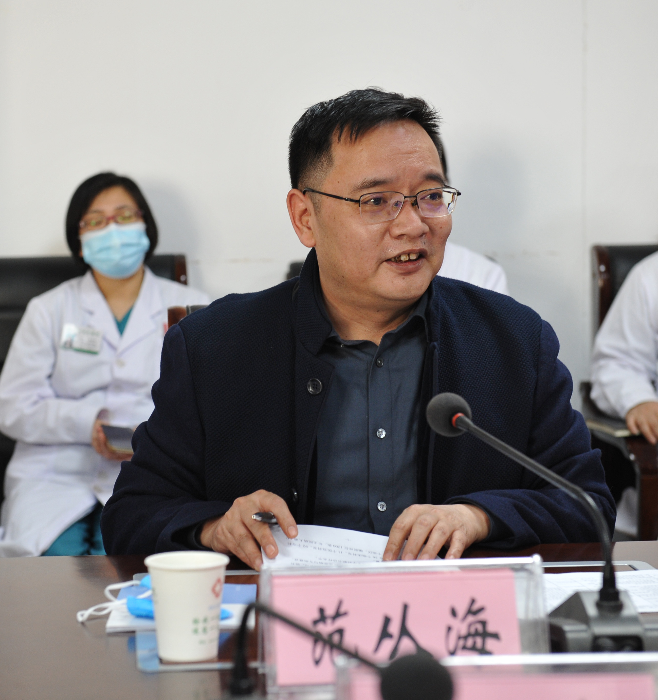 我院党委书记范从海代表医院对专家组的到来表示热烈欢迎,并向专家组汇报医院整体工作及教学情况。范书记表示,医院教学工作的顺利开展离不开学校的关心与支持,我院始终高度重视教学工作,不断完善教学管理体系,强化师资队伍建设,改善学生学习和生活条件,努力推进实习和床边教学工作的高质量发展。