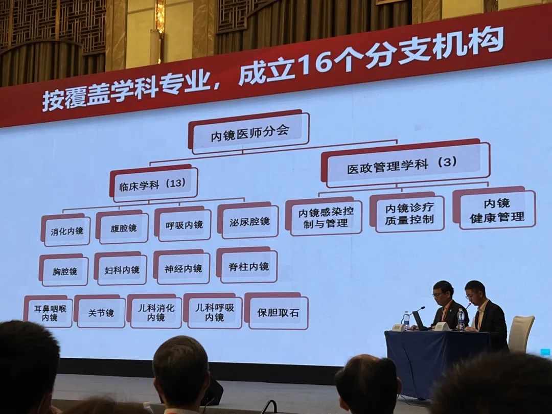 中国医师协会内镜医师分会是中国医师协会下属规模最大的二级学会之一。新一届委员会委员共394名,覆盖31个省、直辖市及自治区,由消化内镜、呼吸内镜、普通外科内镜、妇科内镜、关节镜、泌尿外科镜、胸腔镜、儿科呼吸内镜、儿科消化内镜、神经内镜、内镜微创保胆11个专业诊疗技术组成。