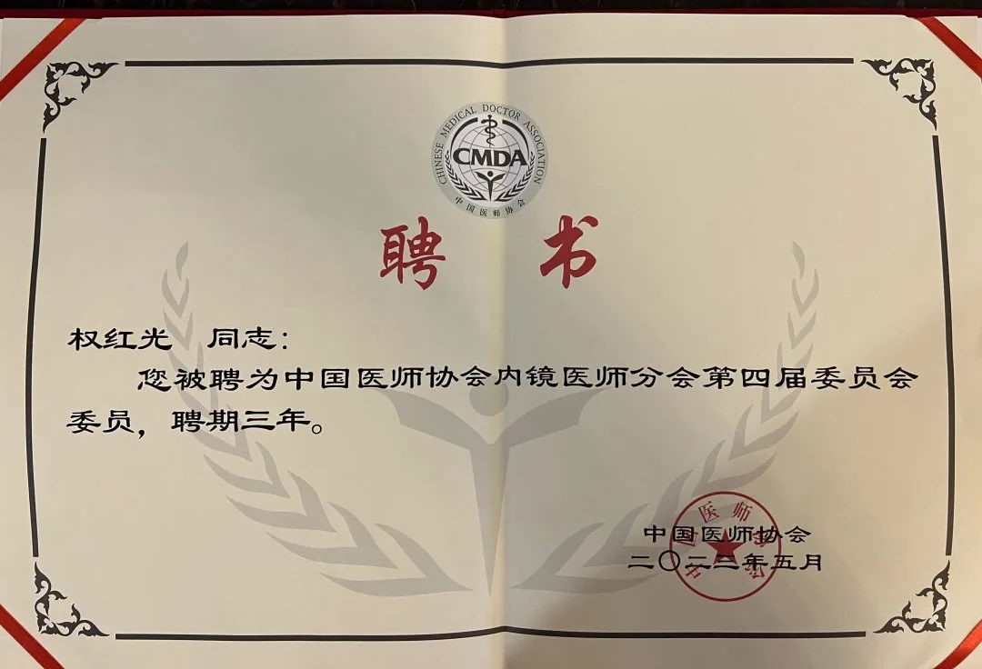 当前位置: 首页>祝贺!权红光主任当选中国医师协会内镜医师分会第四届委员会全国委员