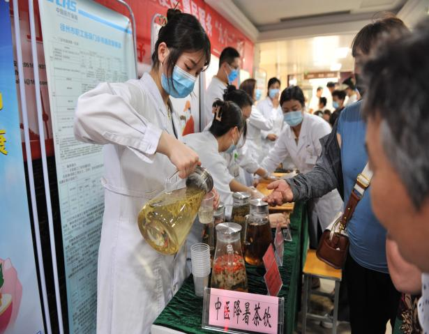 夏季气候湿热,徐州市中医院根据此特点,充分发挥中医药特色,在门诊大厅为患者免费提供消暑茶饮、祛湿茶饮。
