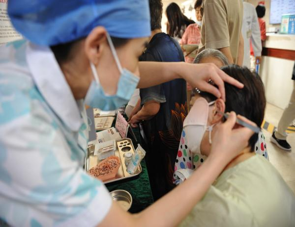 徐州市中医院长期开展冬病夏治穴位贴敷、耳穴压豆、刮痧等中医特色外治疗法。活动现场护理人员为患者讲解中医外治疗法—耳穴压豆技术并免费让市民体验。