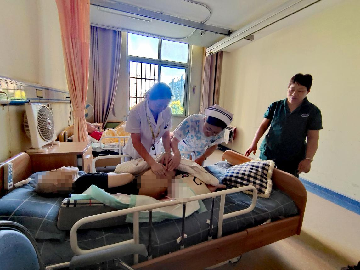 压力性损伤小组组长李美娟科护士长对长期卧床老人失禁性皮炎的防护给予现场指导