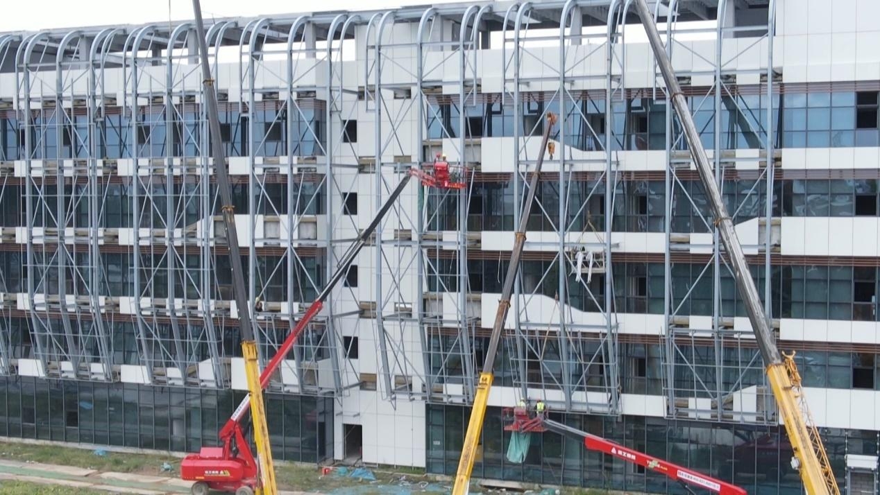 在今年的城建重点工程中,多个医疗卫生项目稳步推进,目前,徐州市中医院新院项目的主体结构已经完工,外幕墙的施工也完成了90%左右。