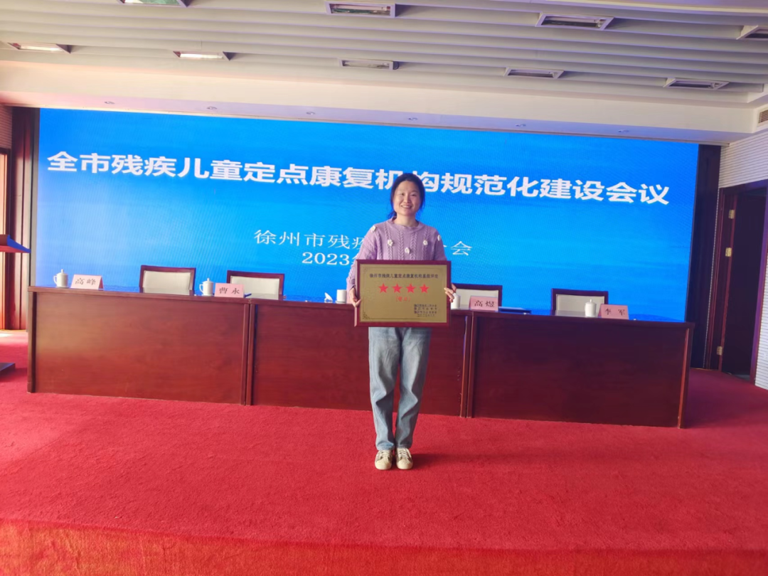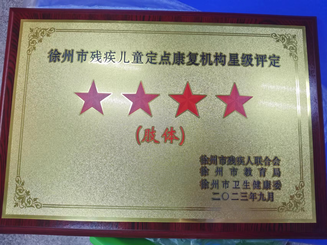 2023年11月28日,在全市残疾儿童定点康复机构规范化建设会议上,通报了残疾儿童定点康复机构星级评定情况,并颁布了定点机构星级牌匾。徐州市中医院被评为徐州市残疾儿童肢体类别四星级定点康复机构、徐州市残疾儿童智力类别四星级定点康复机构。