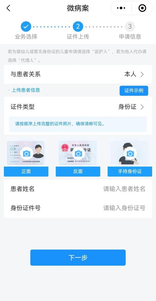 2. 申请人为代理人的,提供患者及代理人的有效身份证明,双方的有效身份证正面、反面及本人手持身份证照片及真实有效的病历复印授权委托书。
