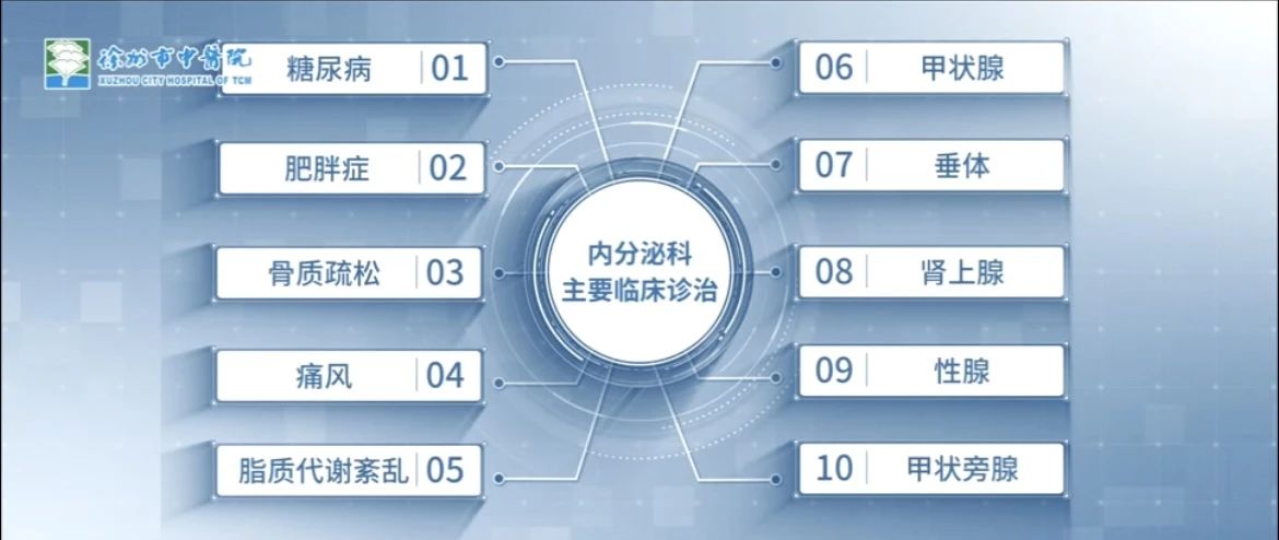 徐州市中医院内分泌科成立于2007年,为徐州市中医临床重点专科,历经十余年发展,已成为淮海经济区最大的以中医药为主、中西医结合防治内分泌代谢性疾病的临床重点专科。