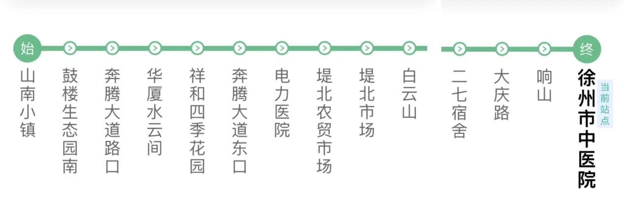 山南小镇、鼓楼生态园南、奔腾大道路口、华厦水云间、祥和四季花园、奔腾大道东口、电力医院、堤北农贸市场、堤北市场、白云山、二七宿舍、大庆路、响山、徐州市中医院。