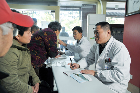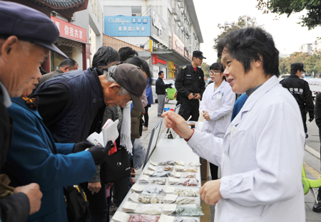 药剂科副主任王慧向市民介绍膏方养生知识,并请市民免费品尝膏方