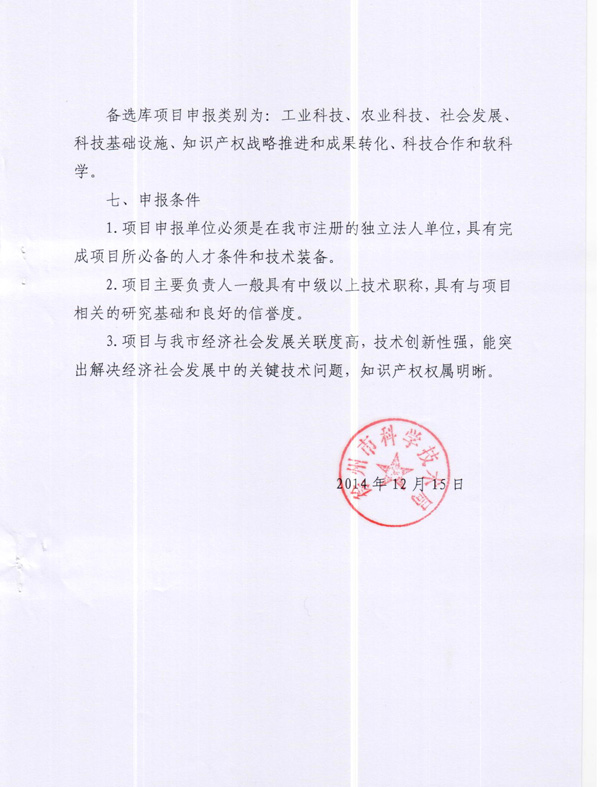 关于征集徐州市科技计划入库备选项目的通知