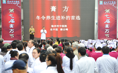 徐州市中医院王培安院长、王心力书记携医院全体领导班子成员参加了启动仪式,来自医疗、护理、药剂等11个方队的医务人员现场助阵。启动仪式上,王培安院长向到场的来宾致欢迎辞,王院长在致辞中表示:“我们真诚希望通过这次膏方节的举办,让越来越多的市民经过膏方进补和特色中药制剂的调理,能够更深入地了解中医药,认识中医药,感受中医药在医疗保健中独特的作用,使千年国粹得以传承,把祖国传统医学进一步发扬光大。我们将努力把膏方节办成贴近实际、贴近生活、贴近群众的惠民利民活动,努力为广大人民群众提供优质高效的医疗保健服务。”随后,应邀而来的江苏省中医院党委副书记、纪委书记薛明新、徐州市卫生计生委副主任俞军等嘉宾分别在启动仪式上致辞并对中医院第七届膏方节的举办表示祝贺。