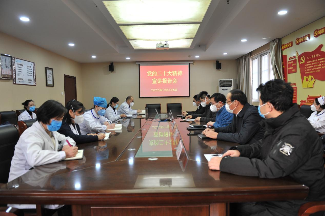 为深入学习贯彻党的二十大精神,切实把全院广大党员干部群众的思想和行动统一到会议精神上来,在全院迅速兴起学习宣传贯彻落实党的二十大精神的热潮,12月29日下午,我...