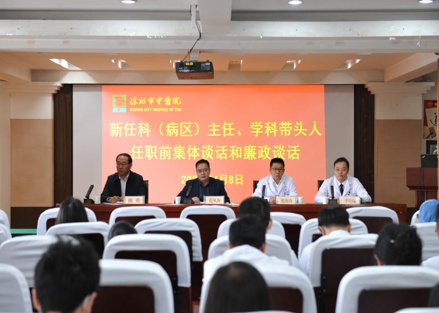 4月8日,我院召开新任科(病区)主任、学科带头人任职前集体谈话和廉政谈话会议。党委书记范从海同志,党委副书记、院长殷海涛同志,党委副书记、纪委书记陈勇同志出席会...