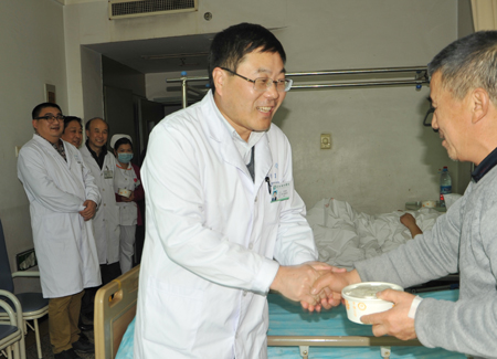 王培安院长看望慰问住院病人在大年三十这个合家团圆、其乐融融的日子,徐州市中医院仍有很多患者因病不能与家人团聚。为了让他们过上一个欢乐的春节,王培安院长带领部分院...