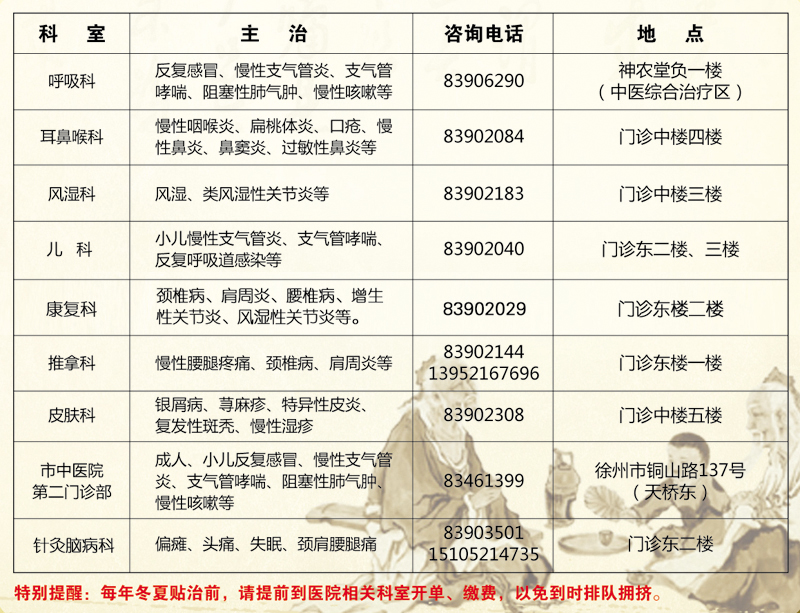 30年临床验证、名中医经典配方、取穴准确严格 穴位贴敷还是到徐州市中医院! 治疗疾病: 慢性支气管炎、支气管哮喘;慢性咽喉炎、过敏性鼻炎、鼻窦炎;小儿反复呼吸道...