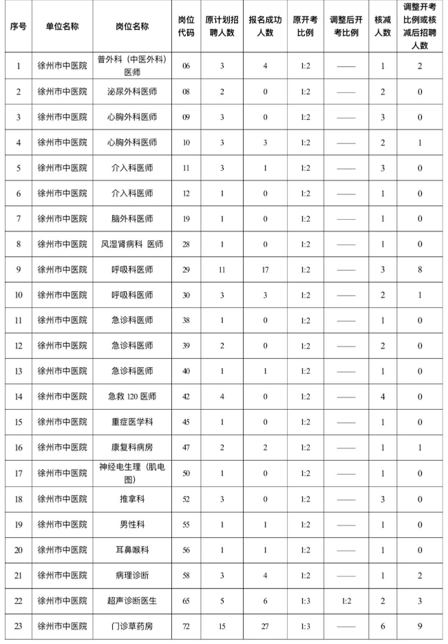 根据《徐州市中医院2024年公开招聘非在编医务人员公告》要求,结合2024年7月15日-19日实际报名情况,经研究决定:对未达到开考比例的岗位,相应核减招聘计划...