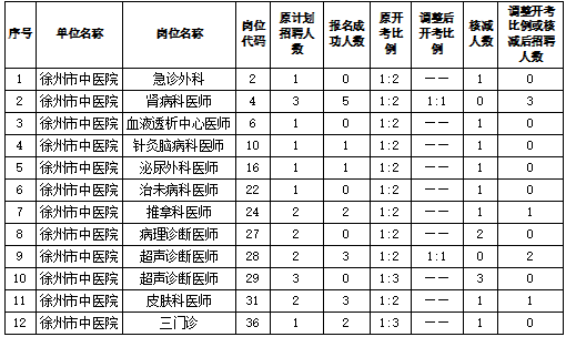 根据《徐州市中医院2025年第二轮公开招聘非在编医务人员公告》要求,结合2025年10月7日-11日实际报名情况,经研究决定:对未达到开考比例的岗位,相应核减招...