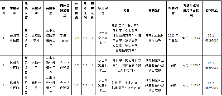 2025年徐州市中医院公开招聘高层次卫生人才岗位表 根据《江苏省事业单位公开招聘人员办法》(苏办发〔2020〕9号)等有关规定,结合医院卫生健康事业发展需要,决...