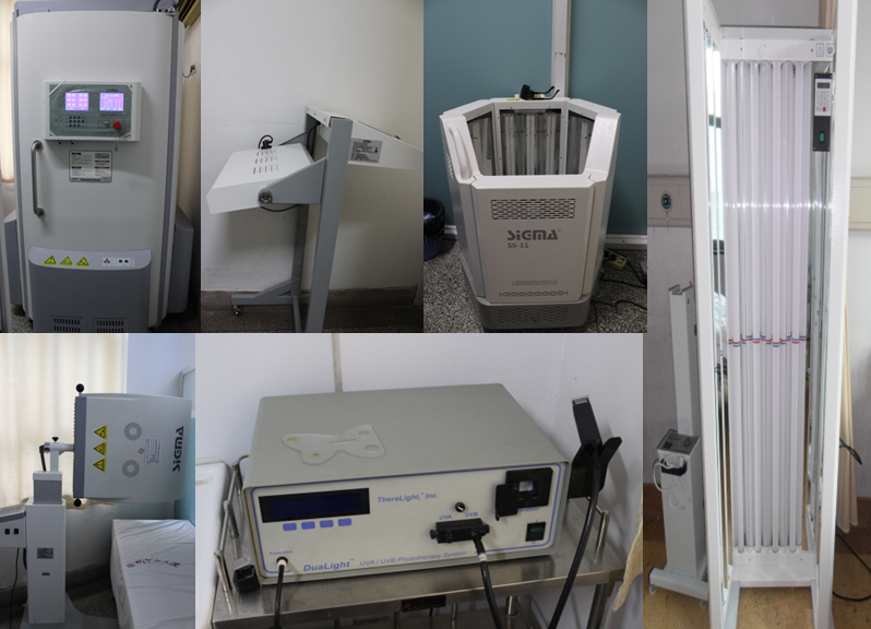 损容性皮肤病亚专科——拥有美国HoYa-ConBio公司Medlite C6 Q开关Nd:YAG双波长(1064nm和532nm)皮肤激光治疗系统、德国Asclepion公司MCL30 Dermablate饵激光点阵系统、以色列飞顿激光光子工作站、以色列飞顿冰点华尔兹脱毛系统、美国Candela公司Vbeam595染料激光、二氧化碳激光、韩国超音波皮肤美容仪、VISIA皮肤分析仪、射频治疗仪(无创微雕美塑抗衰系统)、微波治疗仪、半岛舒敏之星、皮肤辅助分析系统等各种现代化治疗设备10余台。激光美容科能治疗各种损美性皮肤病,如黄褐斑、咖啡斑、纹身、太田痣、雀斑、老年斑、颧骨母斑、皮肤血管瘤、毛细血管扩张、激素依赖性皮炎、色素痣、多毛症、各种疣、痤疮瘢痕等。